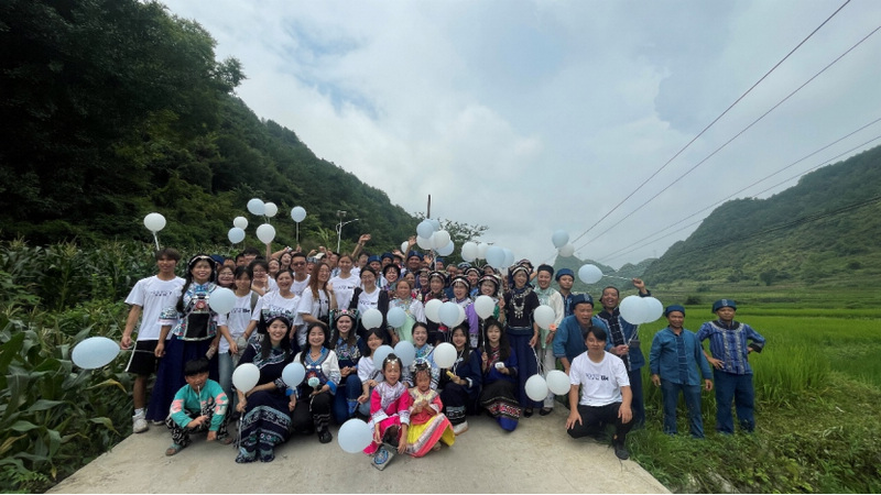 乡村振兴联合工作营师生与青岩镇新关村村民的合照。